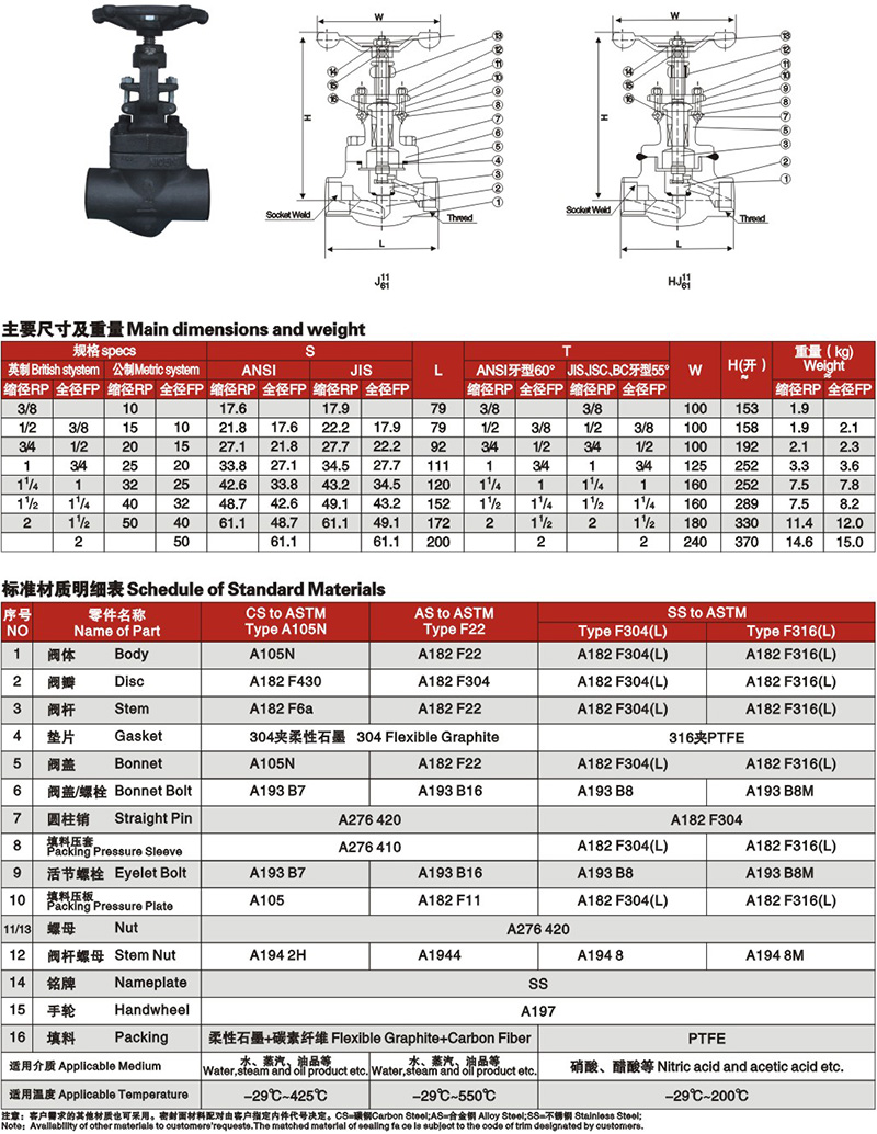 鍛鋼內(nèi)螺紋承插焊截止閥
